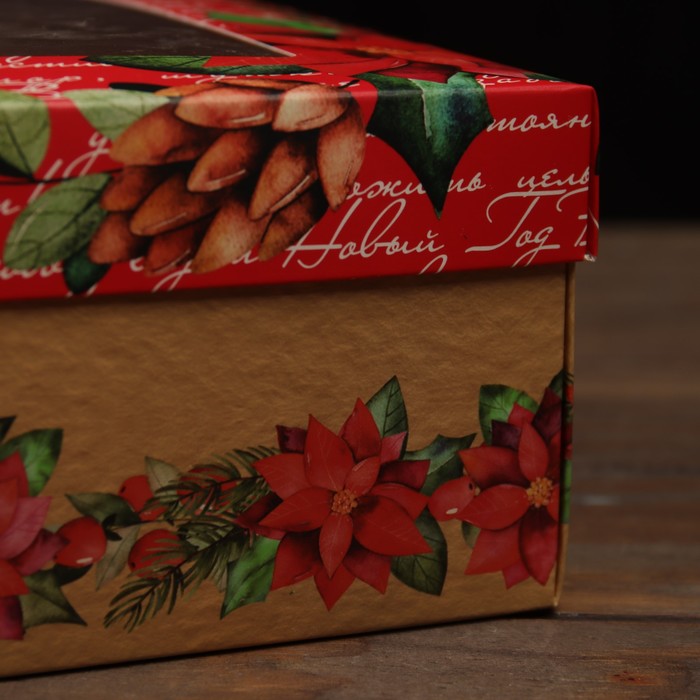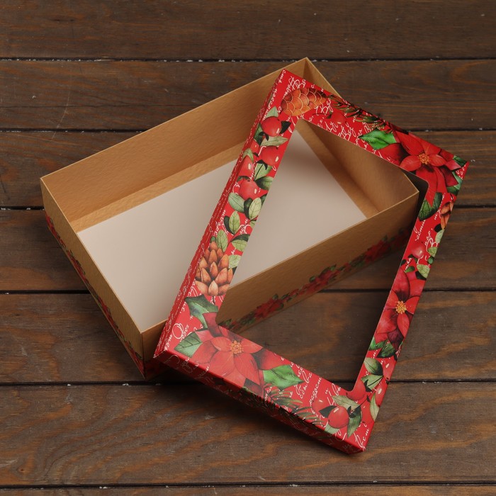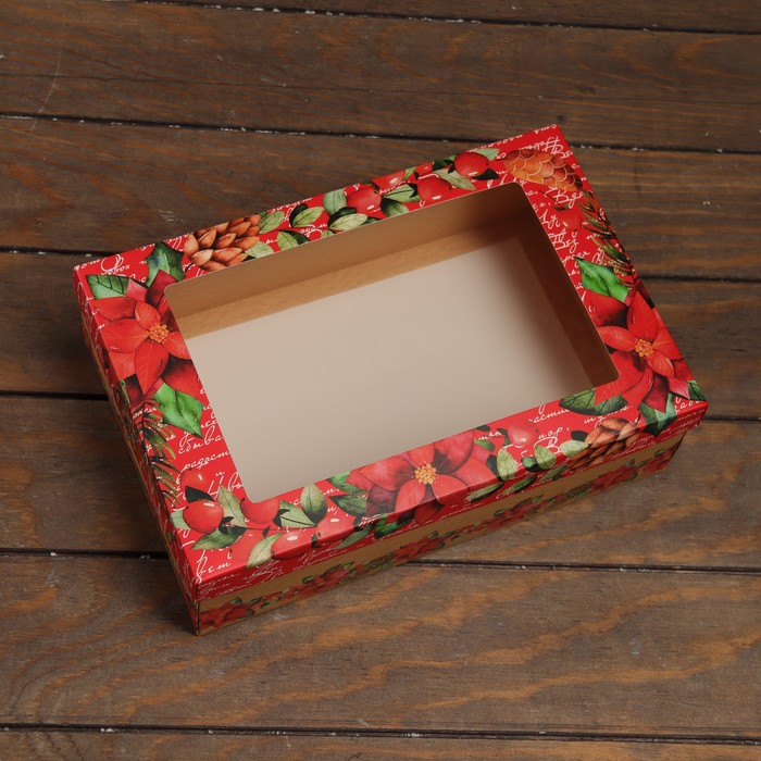 Коробка подарочная новогодняя складная, крышка - дно, с окном «Новогодние чудеса» 30×20×9 см — Характеристики