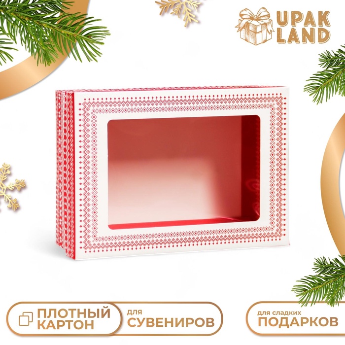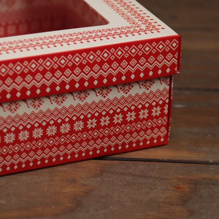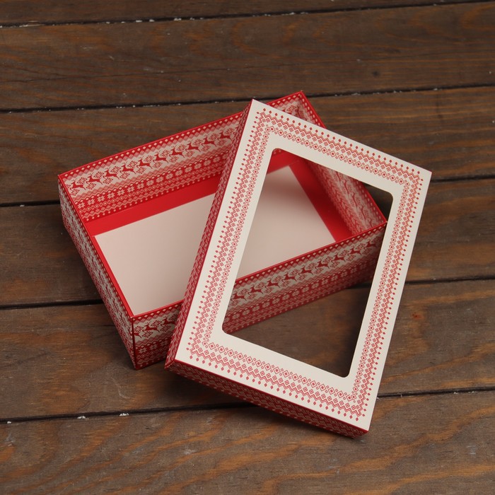 Коробка подарочная новогодняя складная, крышка - дно, с окном «Новогодний Олень» 21×15×7 см — Характеристики