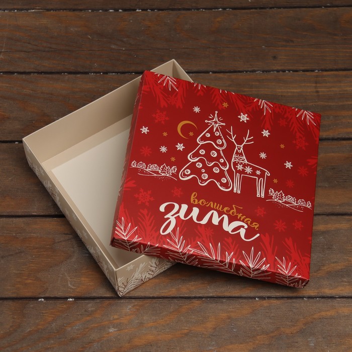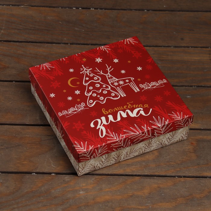Коробка подарочная новогодняя складная, крышка - дно «Волшебная зима» 20×20×6 см — Характеристики