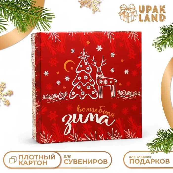 Коробка подарочная новогодняя складная, крышка - дно «Волшебная зима» 20×20×6 см — Характеристики
