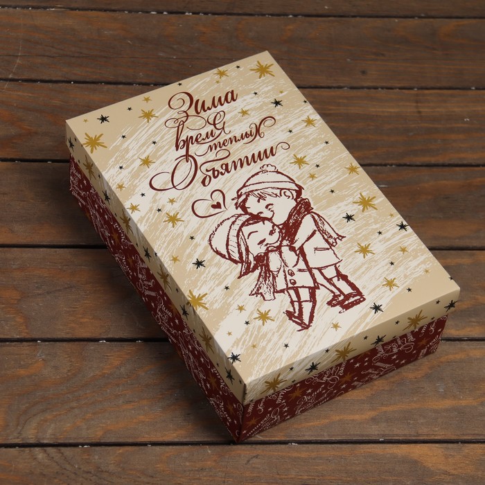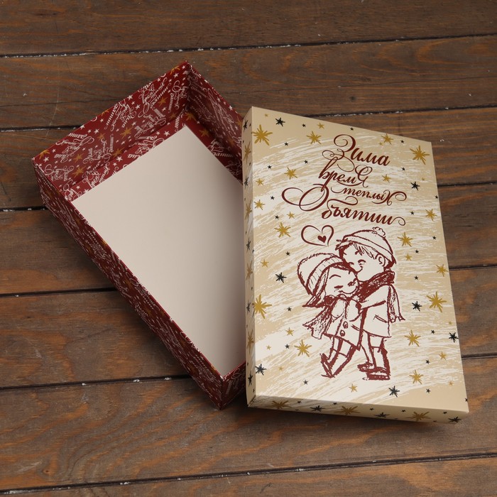 Коробка подарочная новогодняя складная, крышка - дно,«Зима время теплых объятий» 30×20×9 см — Характеристики