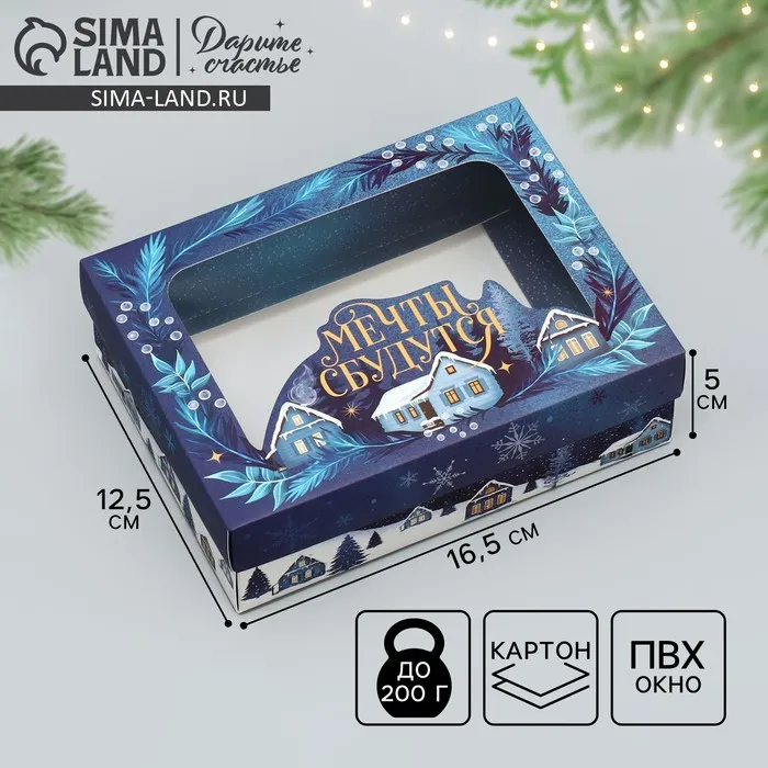 Коробка подарочная новогодняя складная «Мечты сбудутся», 16.5 х 12.5 х 5 см — Характеристики
