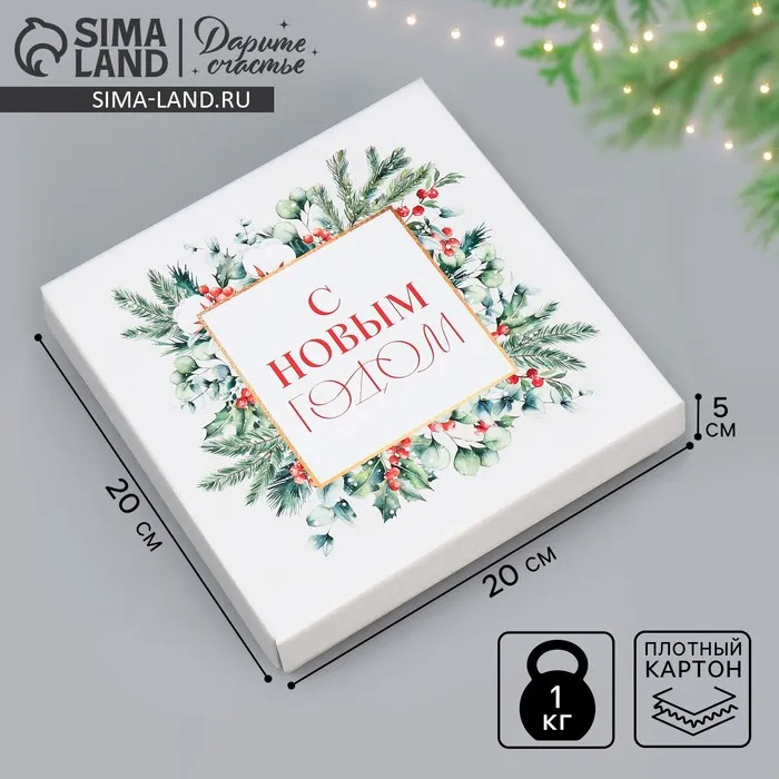 Коробка подарочная новогодняя складная «Новогодняя акварель», 20 х 20 х 5 см — Характеристики