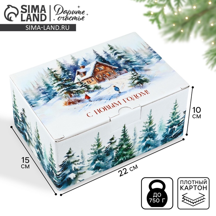 Коробка подарочная новогодняя складная «Новогодняя акварель», 22 х 15 х 10 см — Характеристики