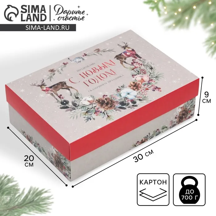 Коробка подарочная новогодняя складная «Новогодняя акварель», 30 х 20 х 9 см, Новый год — Характеристики
