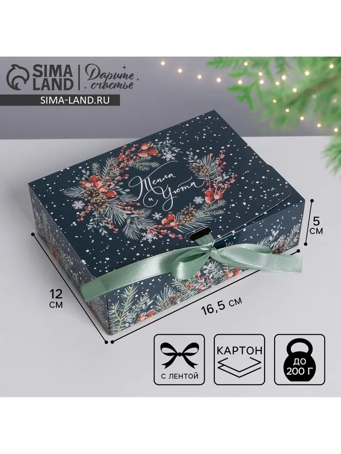 Коробка подарочная новогодняя складная «Новогодняя ботаника», 16.5 х 12 х 5 см, Новый год — Характеристики