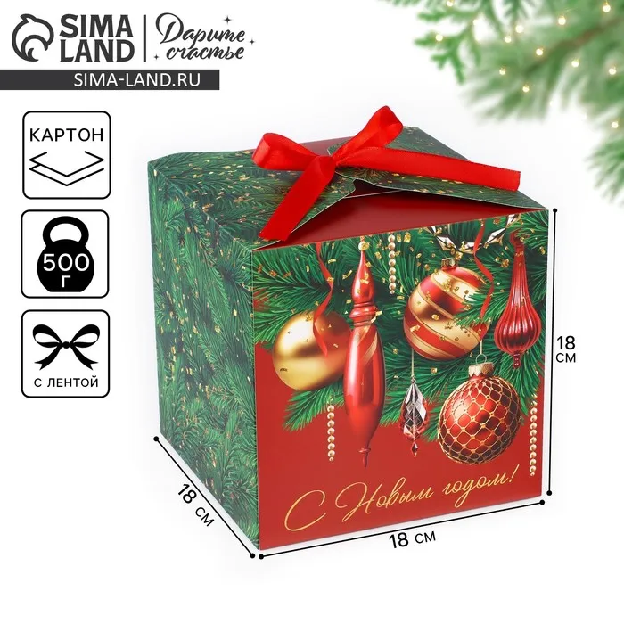 Коробка подарочная новогодняя складная «Новогодняя классика», 18 х 18 х 18 см — Характеристики