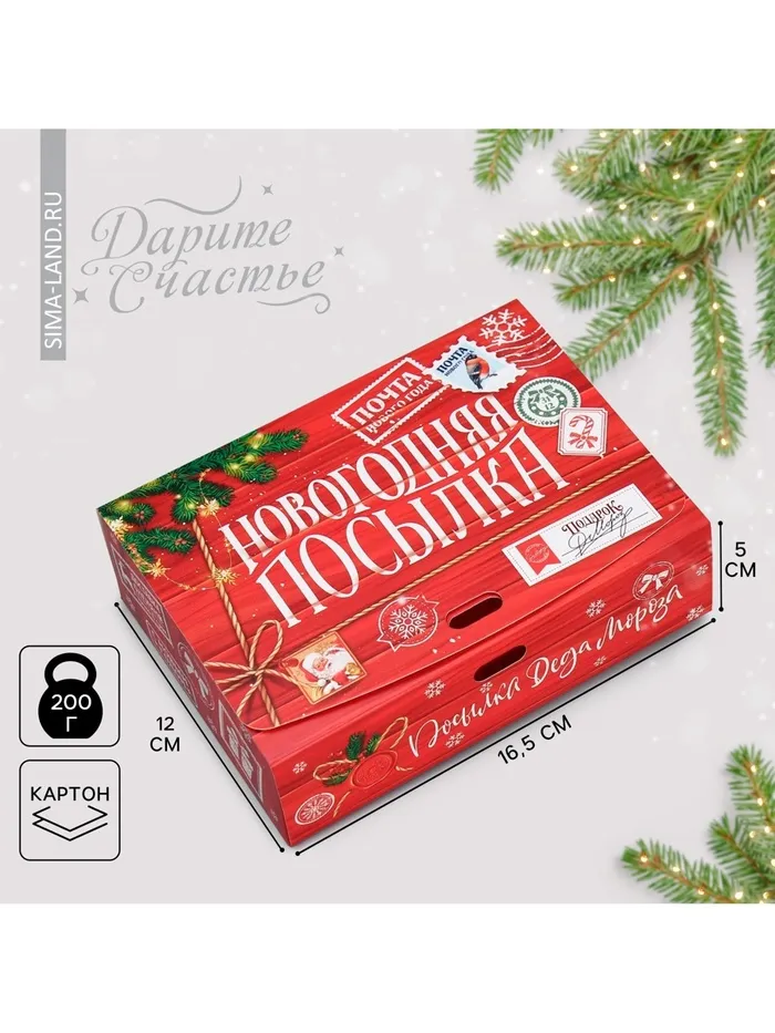 Коробка подарочная новогодняя складная «Новогодняя посылка», 16.5 х 12 х 5 см, БЕЗ ЛЕНТЫ — Характеристики