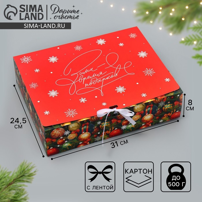 Коробка подарочная новогодняя складная «Новогодние игрушки», 31 х 24.5 х 8 см — Характеристики