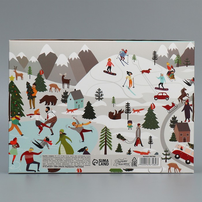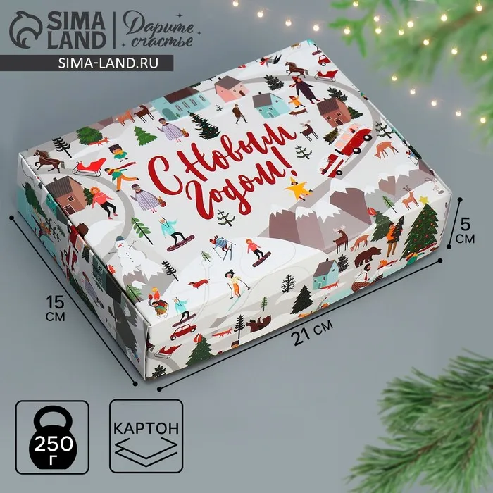 Коробка подарочная новогодняя складная «Новогодние истории», 21 х 15 х 5 см — Характеристики