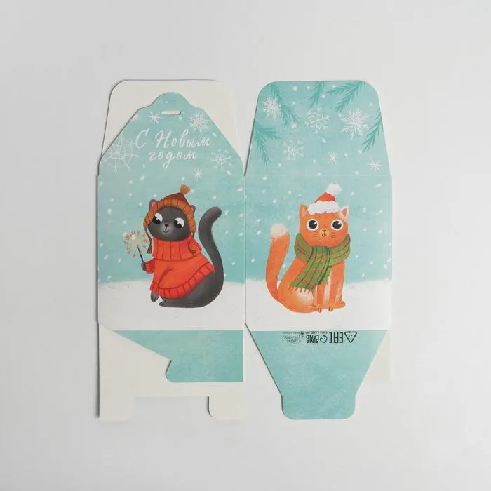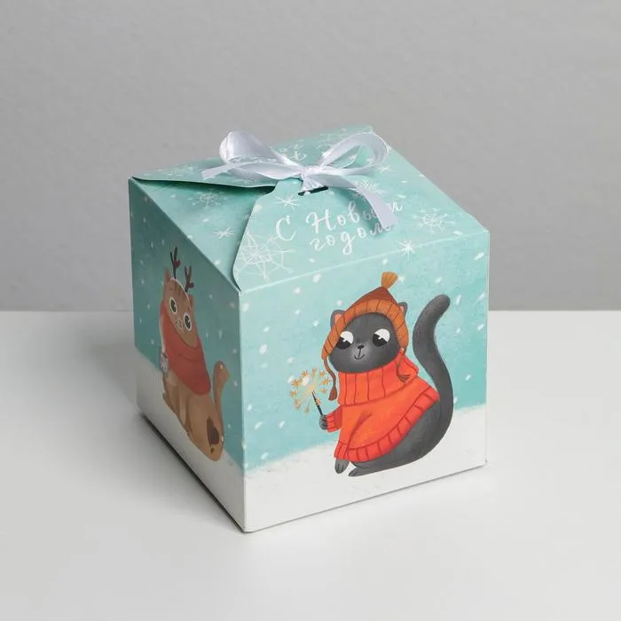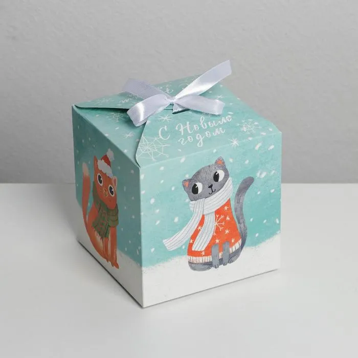 Коробка подарочная новогодняя складная «Новогодние коты», 12 х 12 х 12 см, Новый год — Характеристики