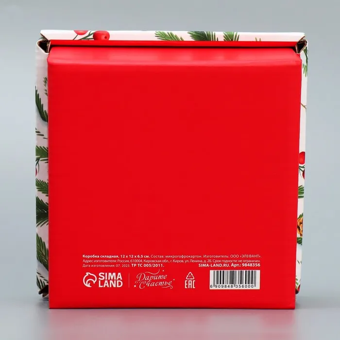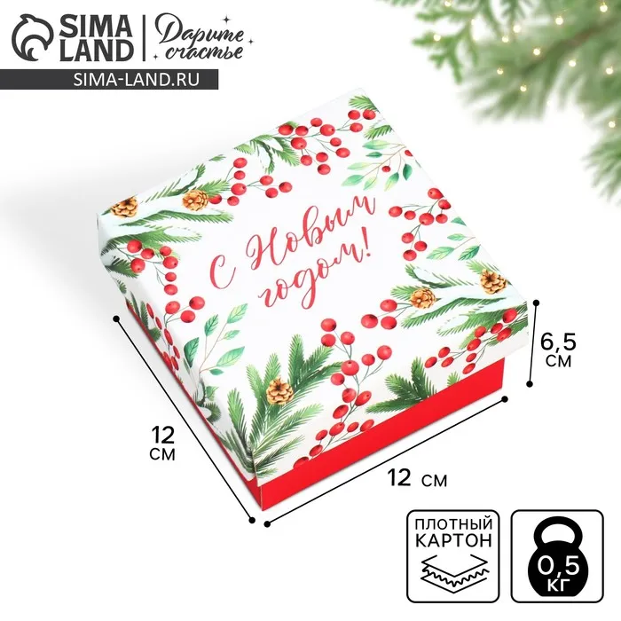 Коробка подарочная новогодняя складная «Новогодние веточки », 12 х 12 х 6.5 см — Характеристики