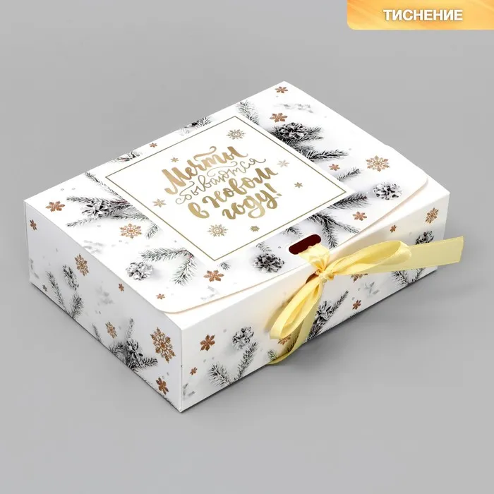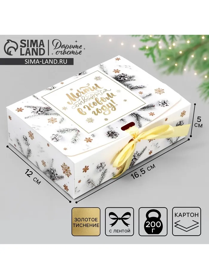 Коробка подарочная новогодняя складная «Новогодние веточки», тиснение, 16.5 х 12 х 5 см — Характеристики