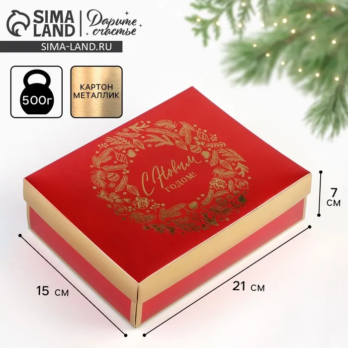 Коробка подарочная новогодняя складная «Новогодний венок», 21 х 15 х 7 см — Характеристики