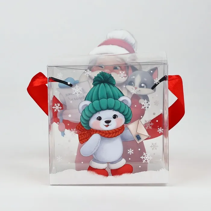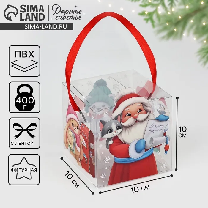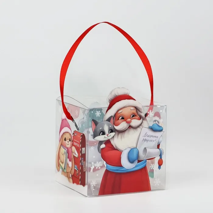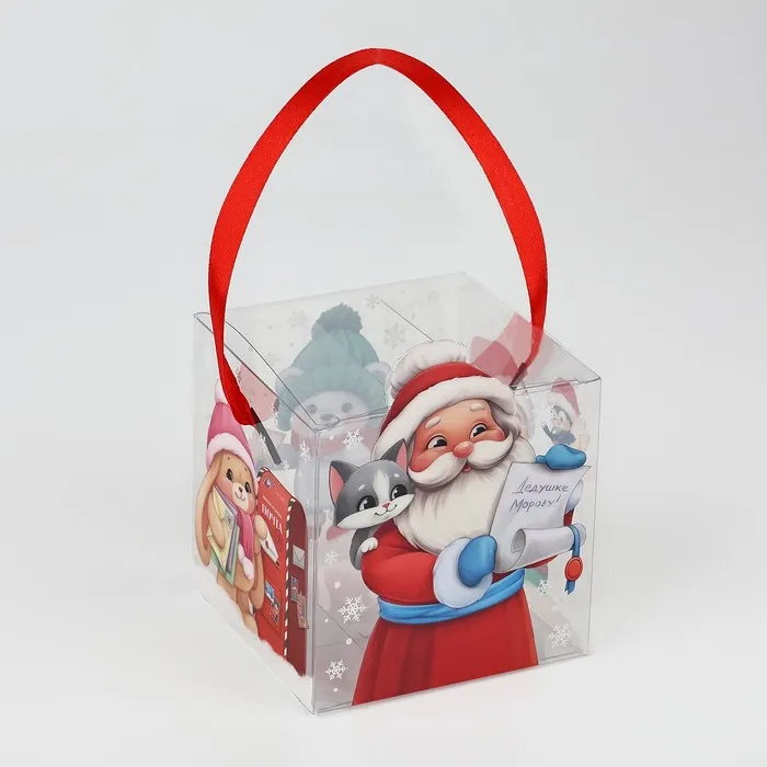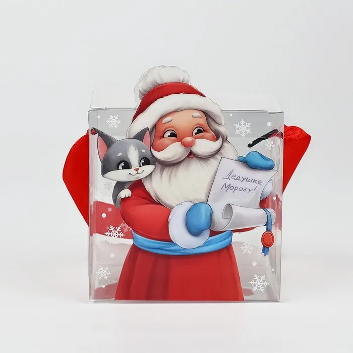 Коробка подарочная новогодняя складная пластиковая, «Дед Мороз», 10 х 10 х 10 см — Характеристики