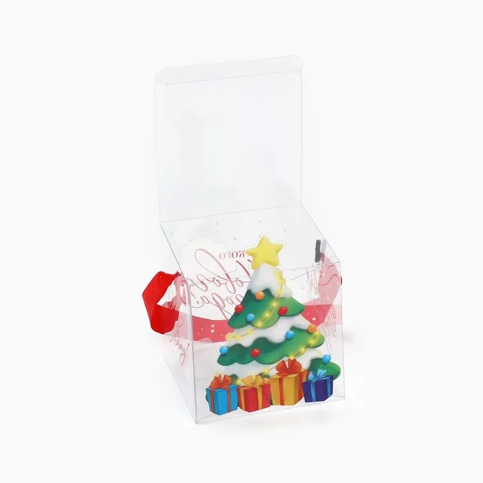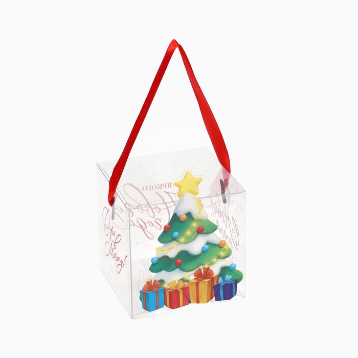 Коробка подарочная новогодняя складная пластиковая, «Ёлочка с подарками», 10 х 10 х 10 см