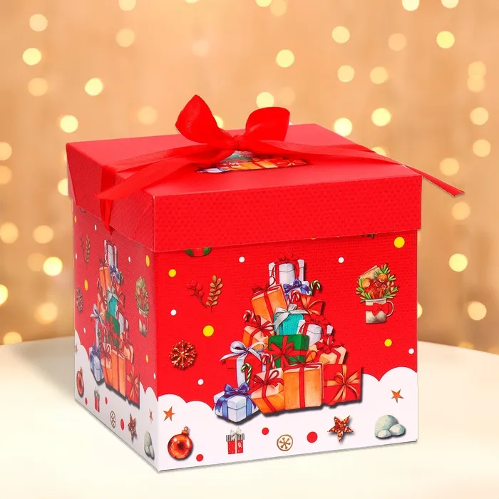 Коробка подарочная новогодняя складная «Подарки» 15×15×15 см — Характеристики