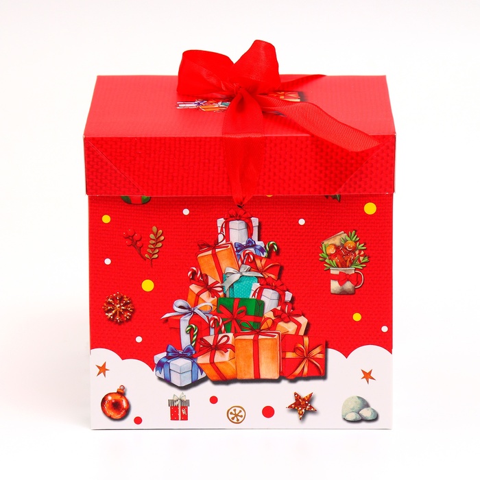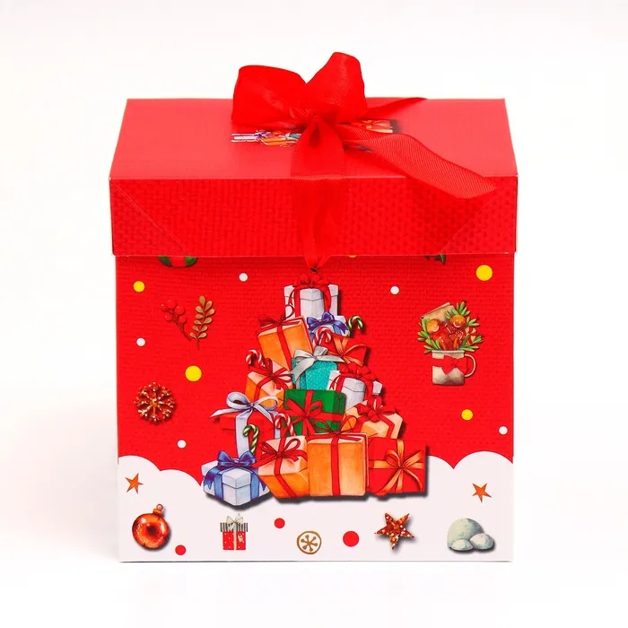 Самосборная новогодняя коробка 15х15х15 см — это практичный и стильный вариант для упаковки подарков.