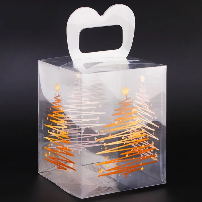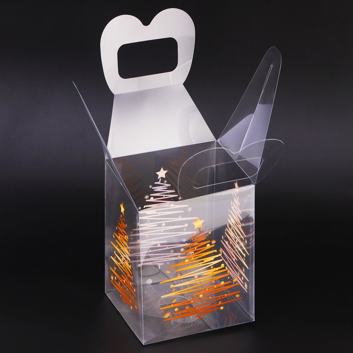 Коробка подарочная новогодняя складная ПВХ «Ёлочка» 12×12×15 см