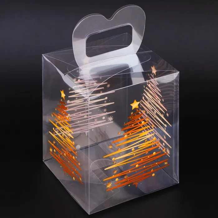 Коробка подарочная новогодняя складная ПВХ «Ёлочка» 12×12×15 см — Характеристики