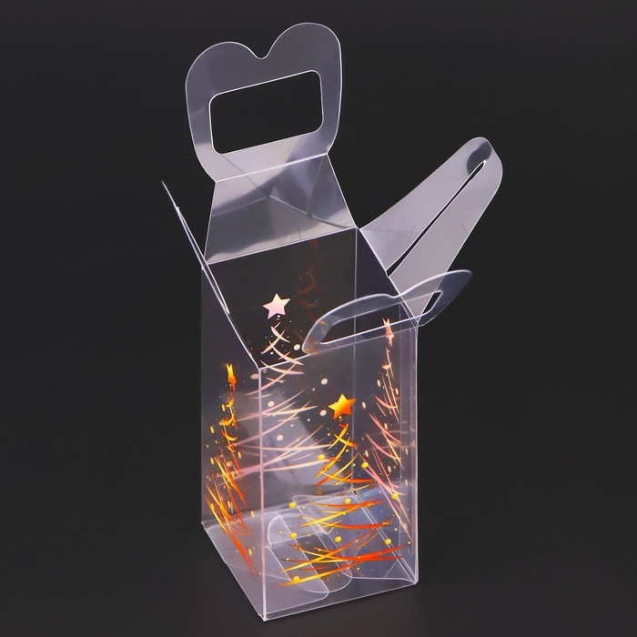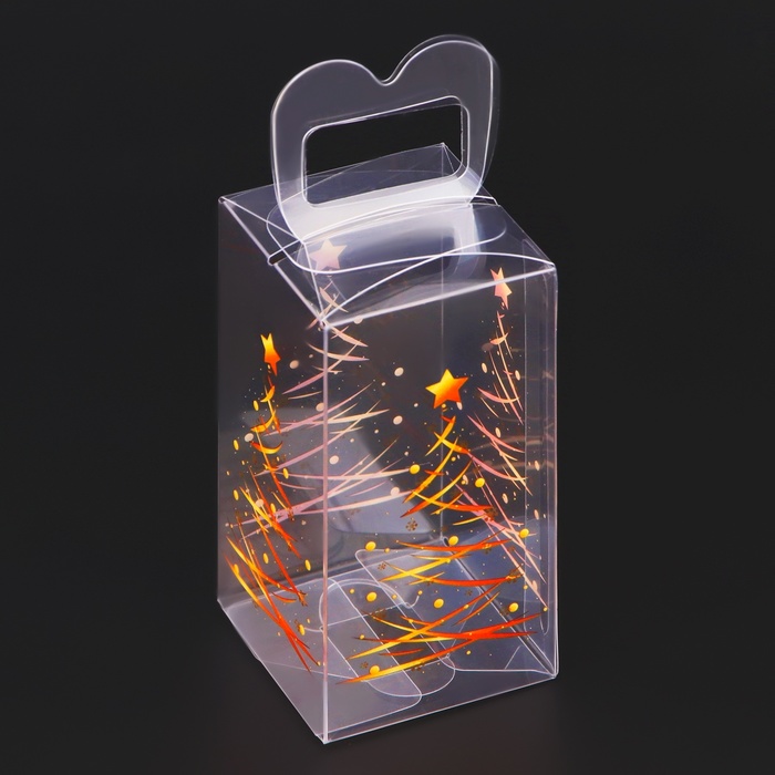 Коробка подарочная новогодняя складная ПВХ « Ёлочка гори!» 4×4×8 см — Характеристики