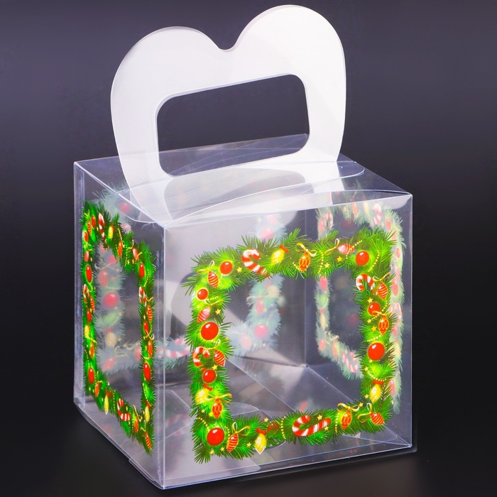 Коробка подарочная новогодняя складная ПВХ «Новогодние игрушки» 10×10×10 см — Характеристики