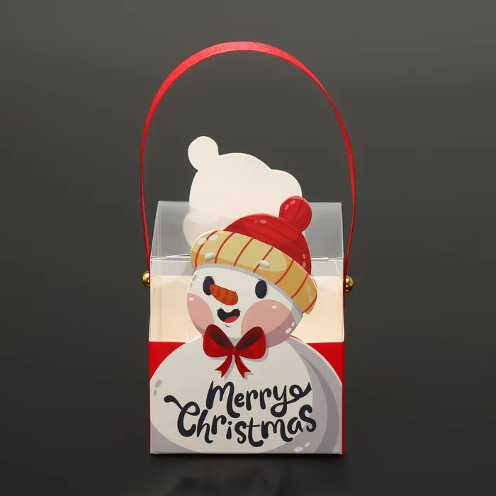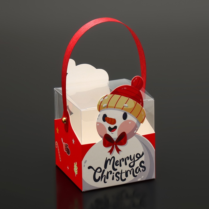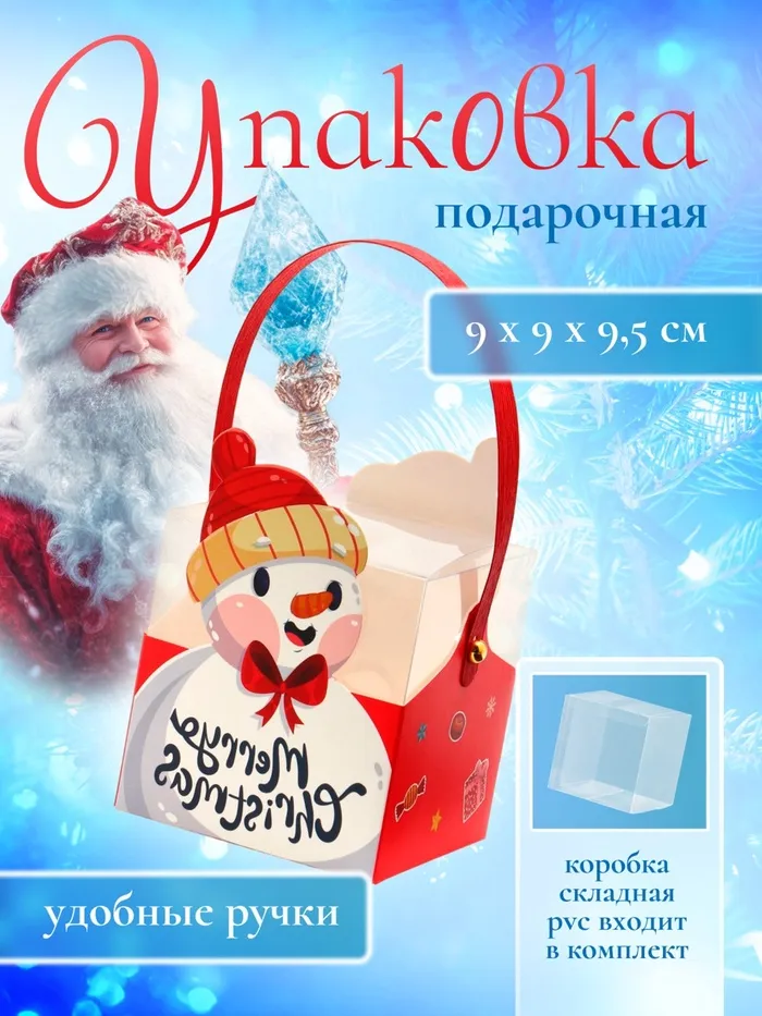 Коробка подарочная новогодняя складная ПВХ с ручками, «Снеговик», 9×9×9.5 см — Характеристики