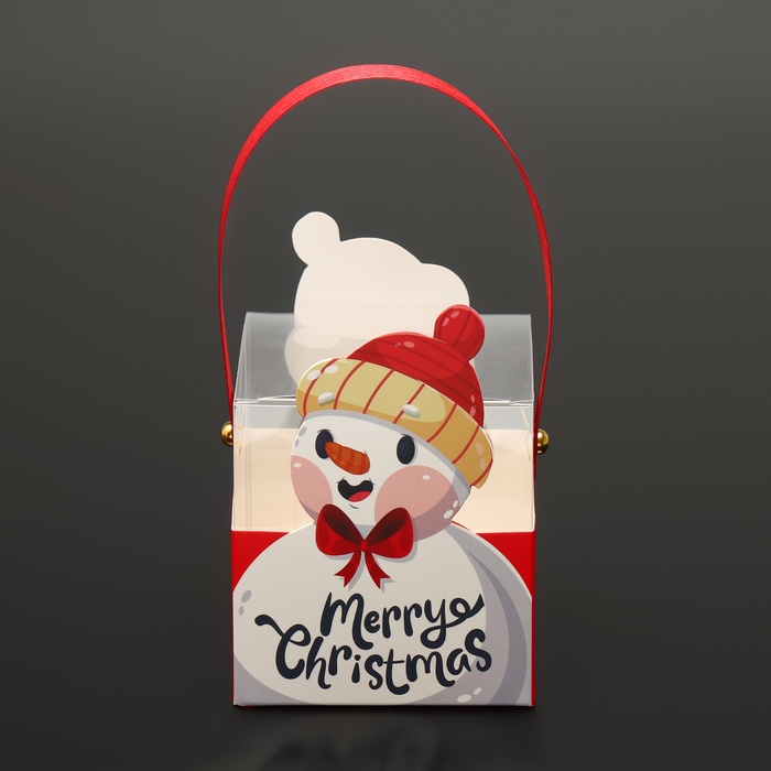 Коробка подарочная новогодняя складная ПВХ с ручками, «Снеговик», 9×9×9.5 см