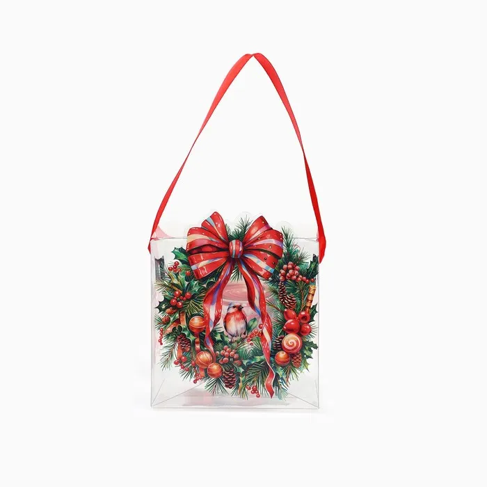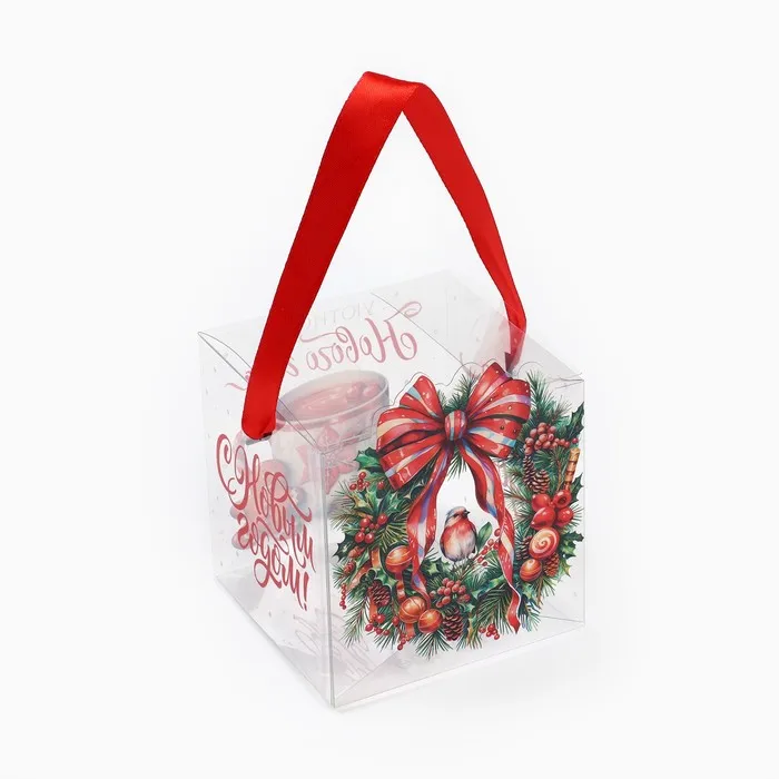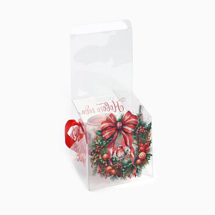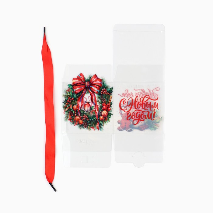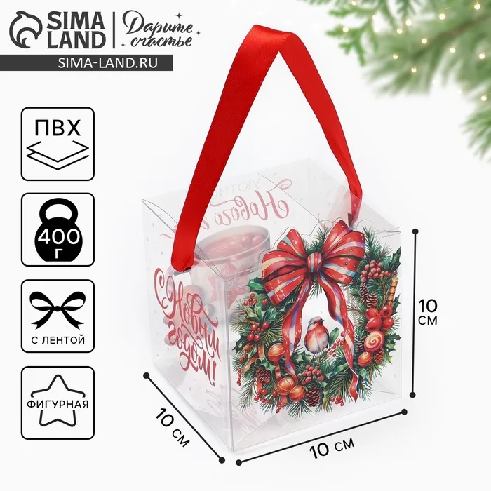 Коробка подарочная новогодняя складная ПВХ, «Венок новогодний», 10 х 10 х 10 см — Характеристики