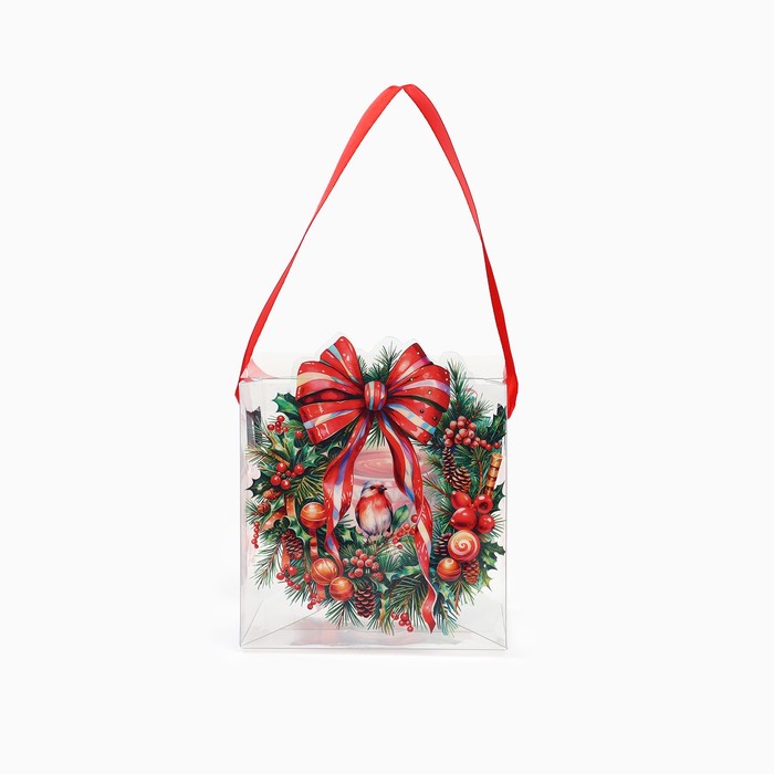 Коробка подарочная новогодняя складная ПВХ, «Венок новогодний», 10 х 10 х 10 см
