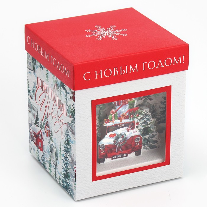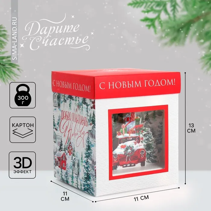 Коробка подарочная новогодняя складная с 3D эффектом «Добро пожаловать в Новый год», 11 х 11 х 13 см
