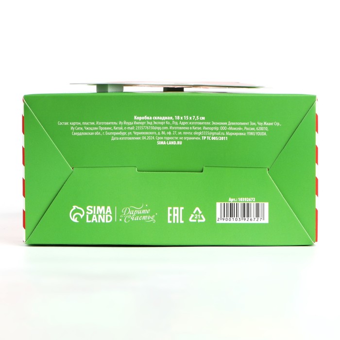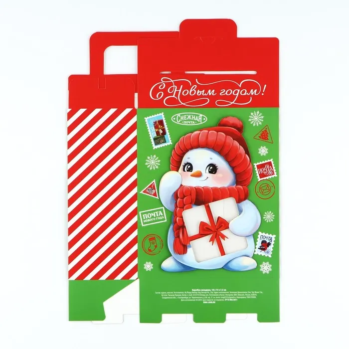Коробка подарочная новогодняя складная с 3D эффектом «Снеговичок», 18 x 15 x 7.5 см — Характеристики