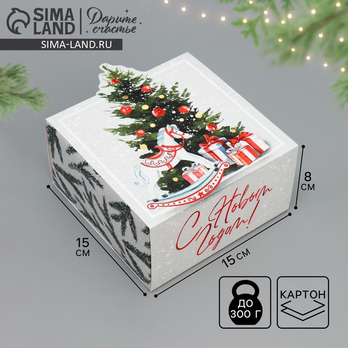 Коробка подарочная новогодняя складная «С новым годом», 15 х 15 х 8 см — Характеристики