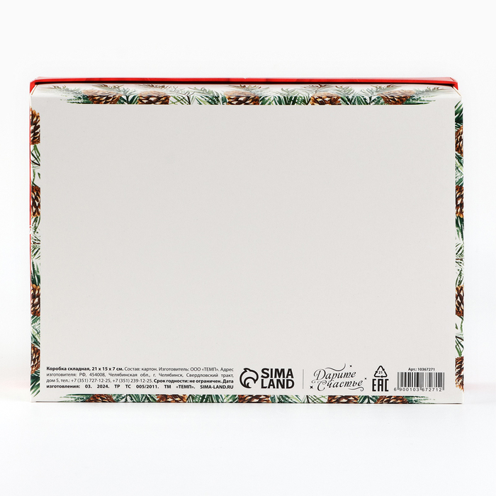 Коробка подарочная новогодняя складная «С новым годом», бант, 21 х 15 х 7 см — Характеристики