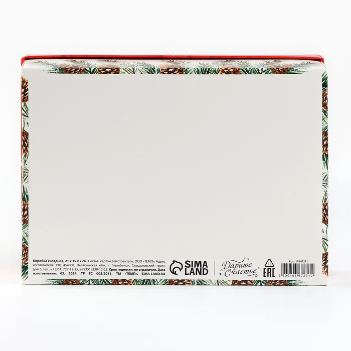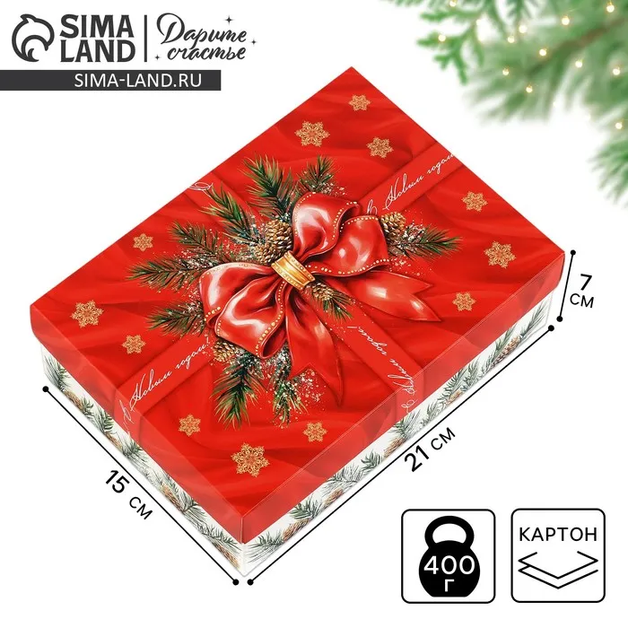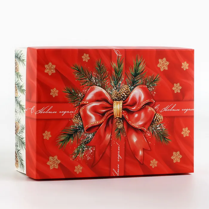Коробка подарочная новогодняя складная «С новым годом», бант, 21 х 15 х 7 см — Характеристики