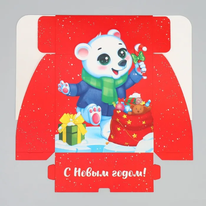 Коробка подарочная новогодняя складная «С Новым годом!», белый мишка, 25 х 25 х 10 см — Характеристики