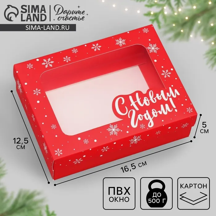 Коробка подарочная новогодняя складная «С Новым годом», красная, 16.5 х 12.5 х 5 см — Характеристики