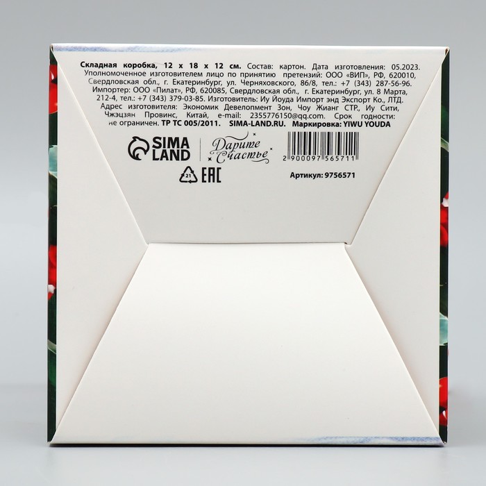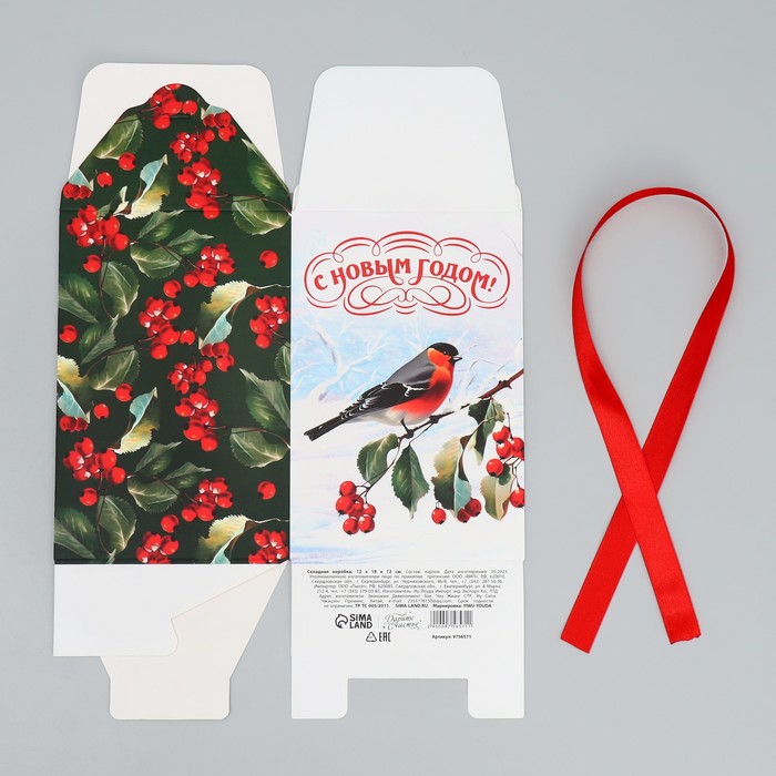 Коробка подарочная новогодняя складная «С Новым годом!», снегирь, 12 х 18 х 12 см, Новый год — Характеристики