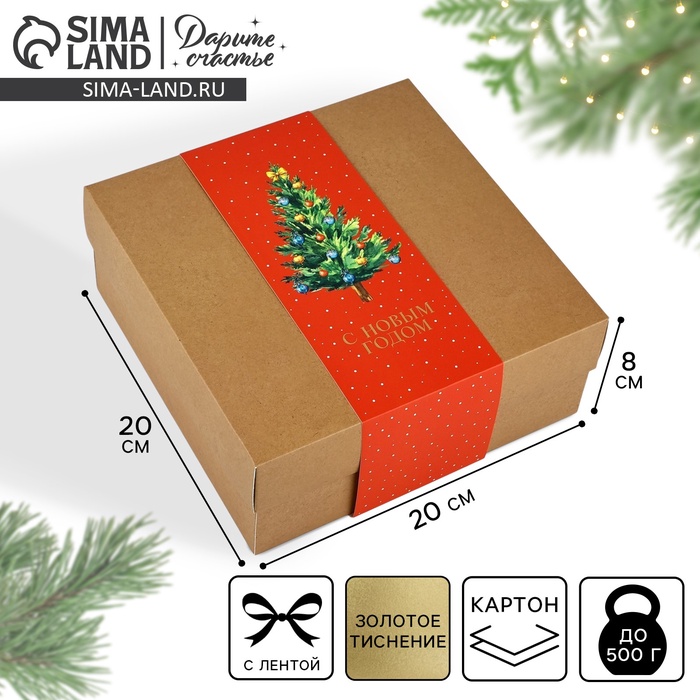 Коробка подарочная новогодняя складная «С Новым годом», тиснение, 20 х 20 х 8 см — Характеристики