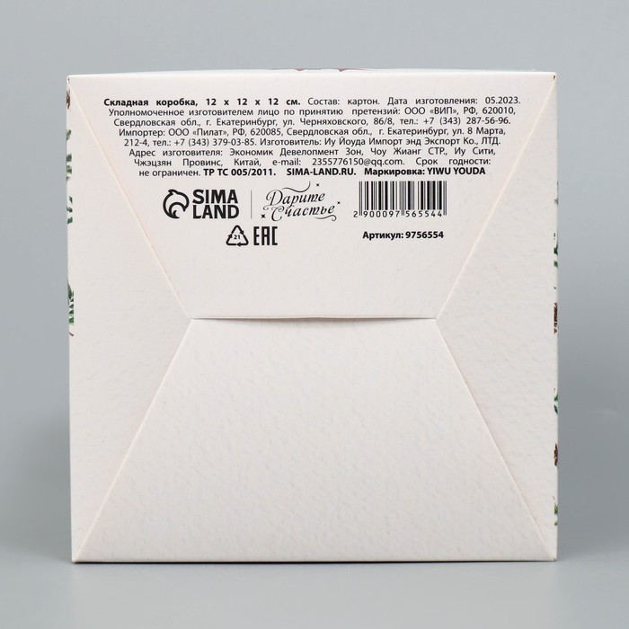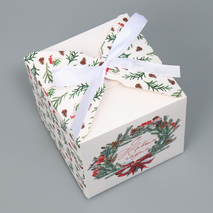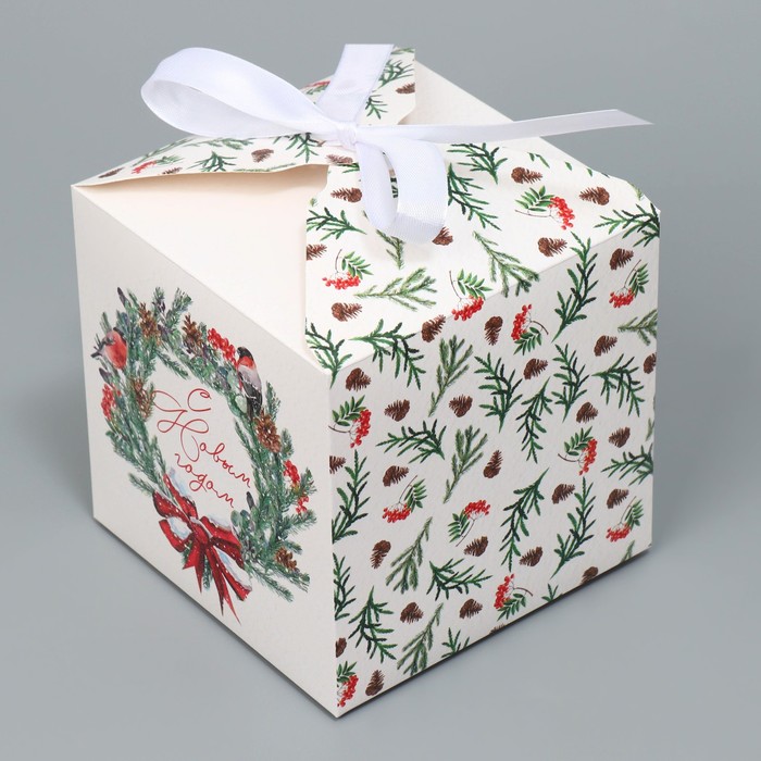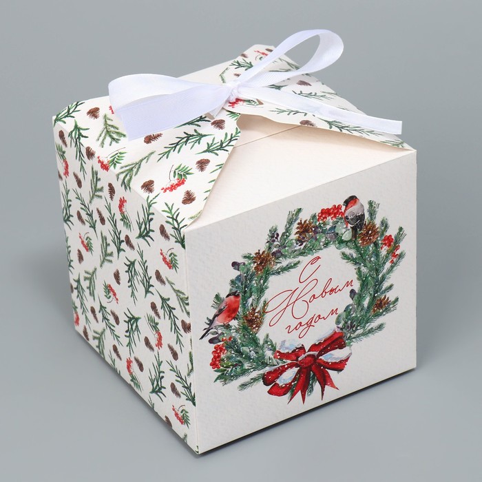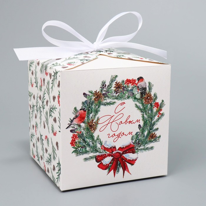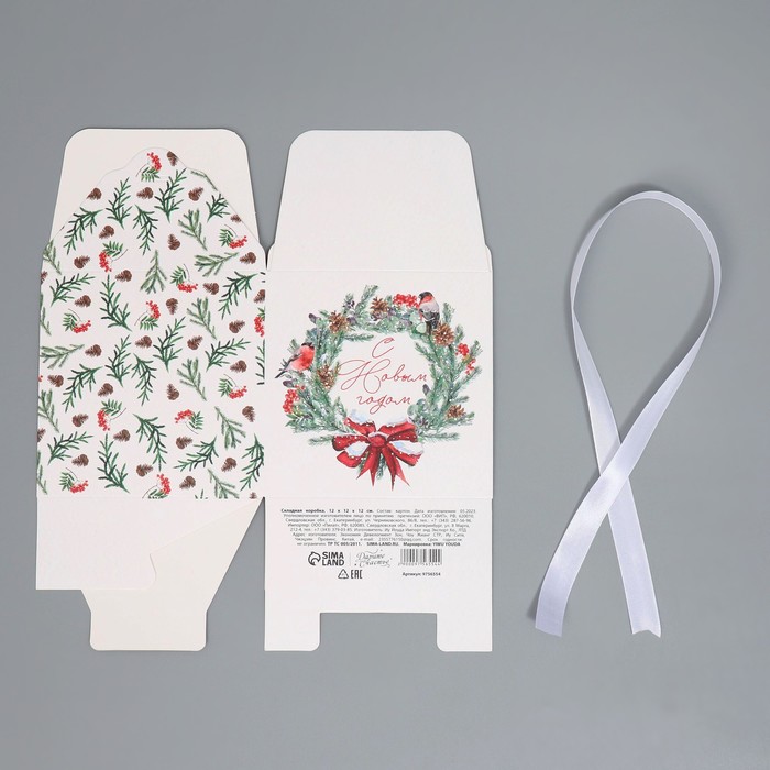 Коробка подарочная новогодняя складная «С Новым годом», венок, 12 х 12 х 12 см — Характеристики