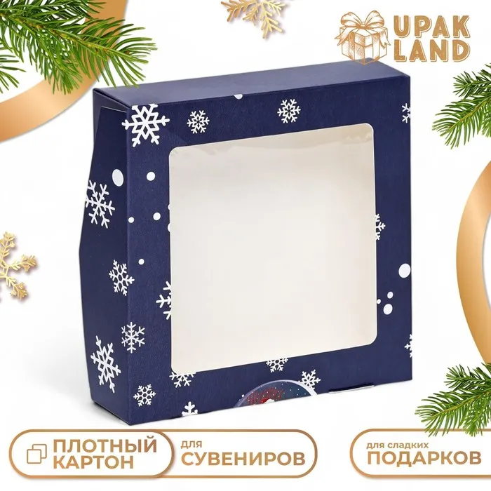 Коробка подарочная новогодняя складная с окном «Метель», 15×15×4 см — Характеристики