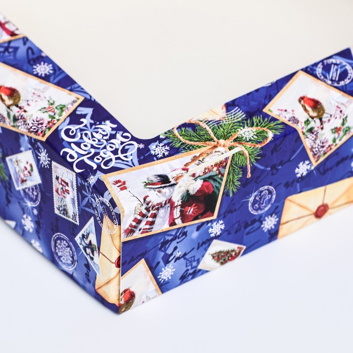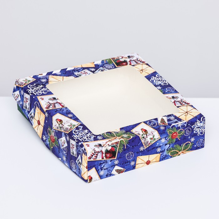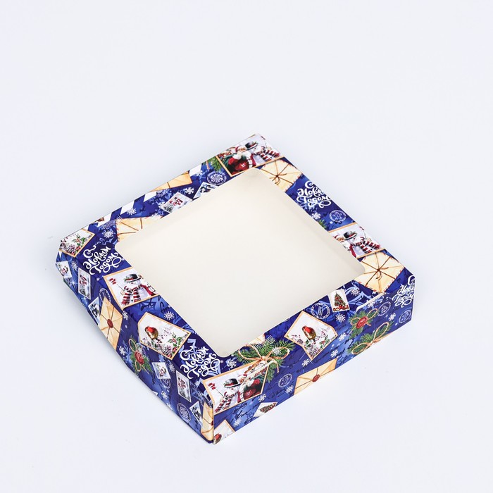 Коробка подарочная новогодняя складная с окном «Новогодняя посылка синяя»15×15×4 см