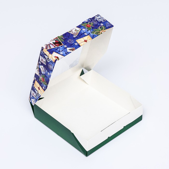 Коробка подарочная новогодняя складная с окном «Новогодняя посылка синяя»15×15×4 см — Характеристики