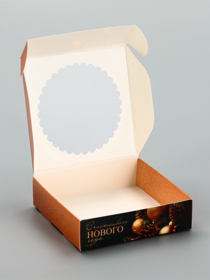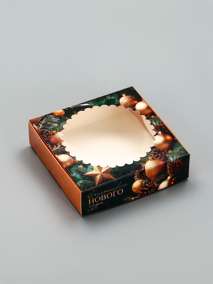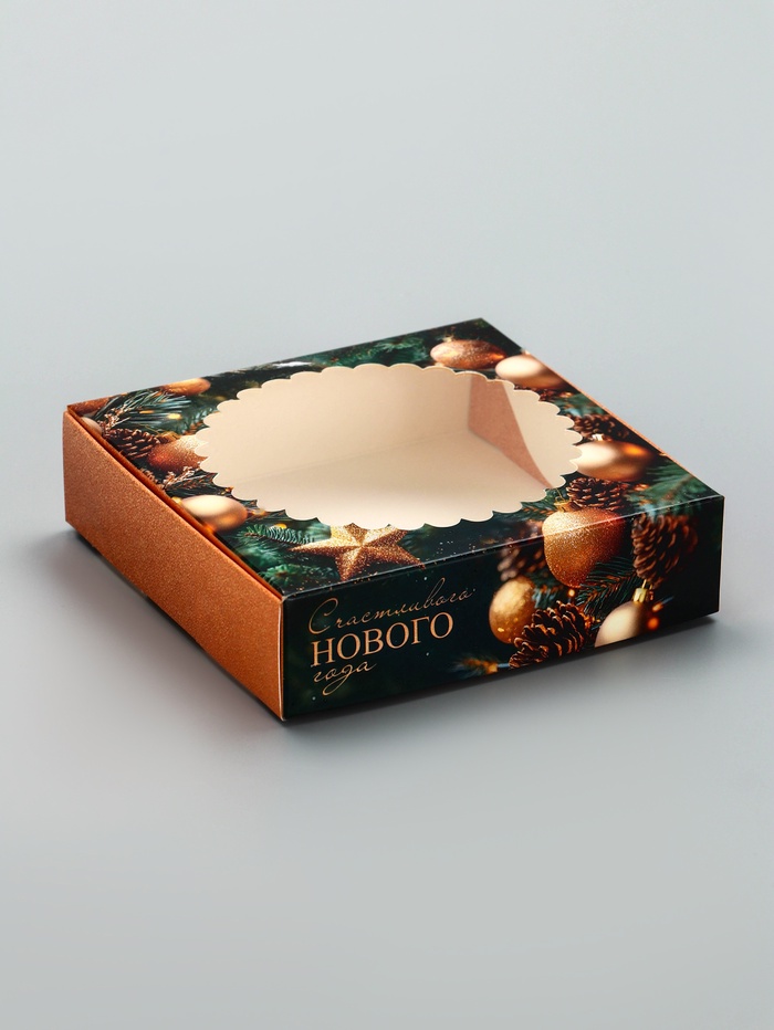Коробка подарочная новогодняя, складная, с окном «Новогодний аромат» 11.5×11.5×3 см — Характеристики