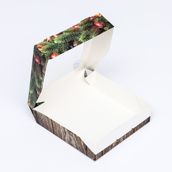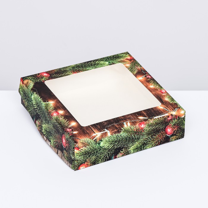 Коробка подарочная новогодняя складная с окном «Огни», 15×15×4 см