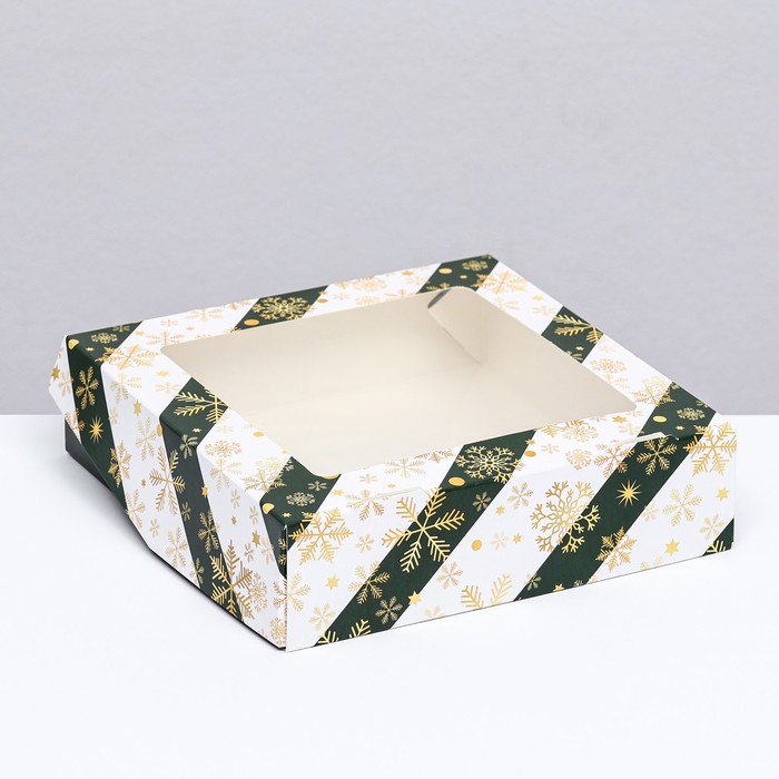 Коробка подарочная новогодняя складная с окном «Снежинка», 15×15×4 см — Характеристики