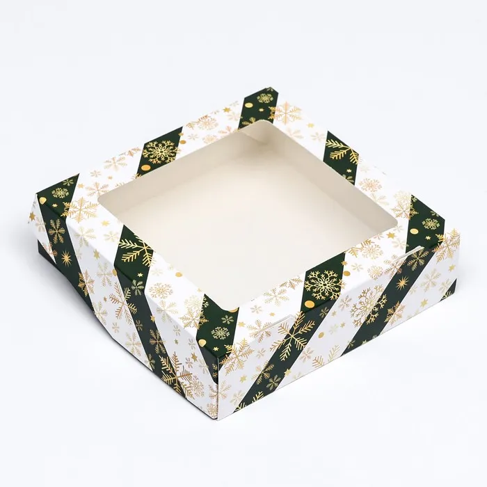 Коробка подарочная новогодняя складная с окном «Снежинка», 15×15×4 см — Характеристики