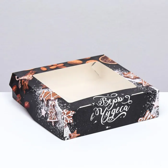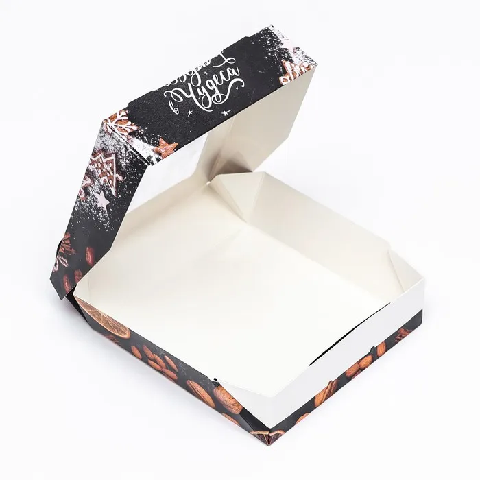 Изготовленная из прочного картона, эта коробка имеет размеры 15 x 15 x 4 см, что позволяет разместить в ней достаточное количество леденцов для украшения новогодней елки или праздничного стола.