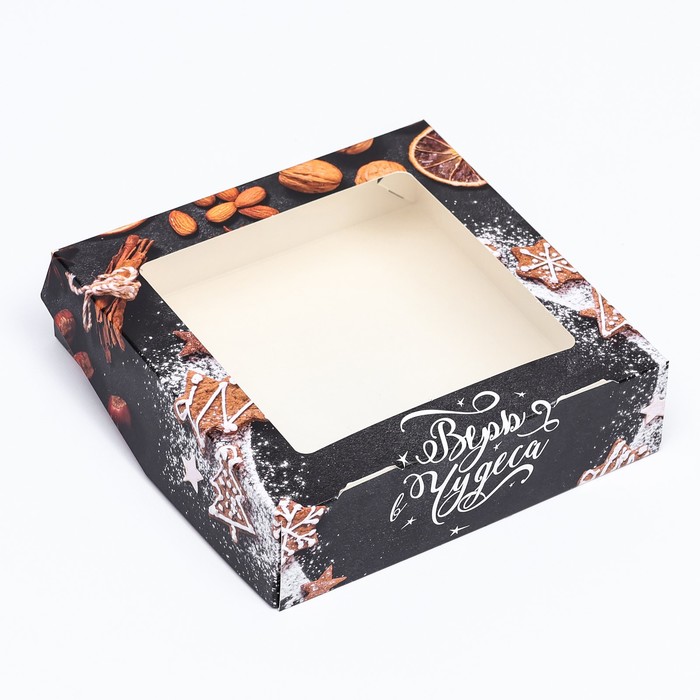 Изготовленная из прочного картона, эта коробка имеет размеры 15 x 15 x 4 см, что позволяет разместить в ней достаточное количество леденцов для украшения новогодней елки или праздничного стола.