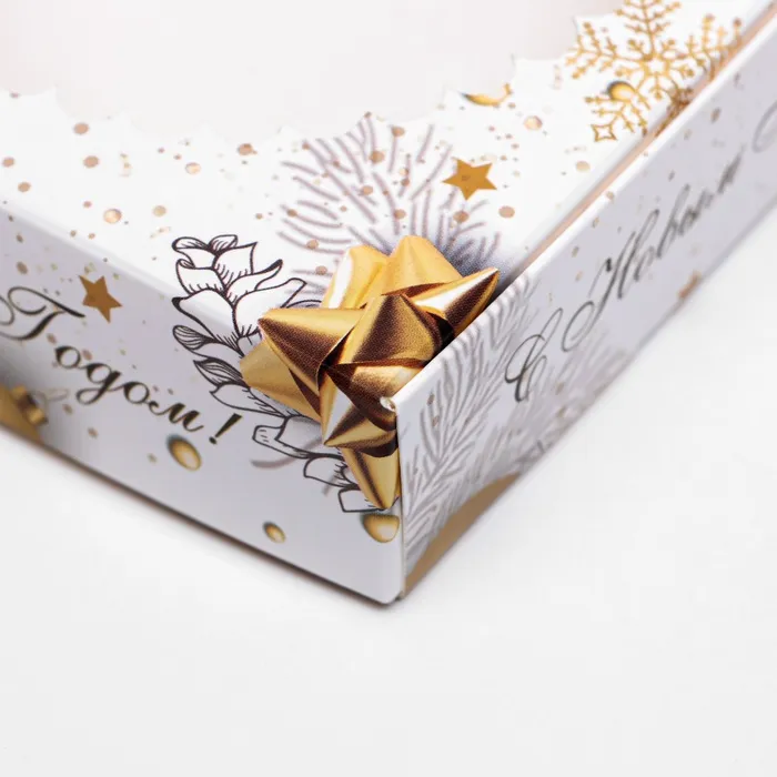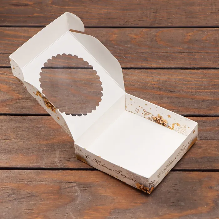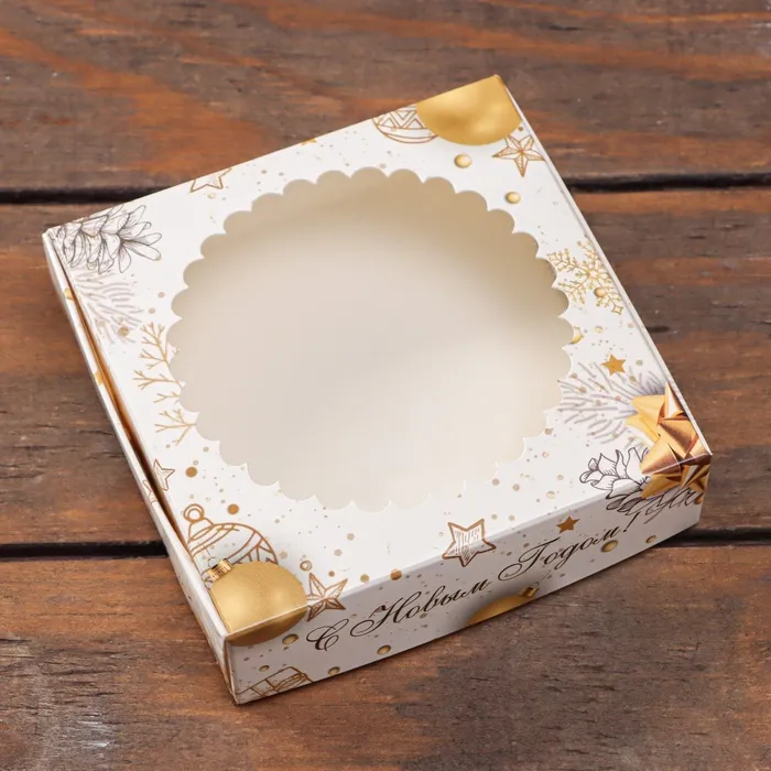 Коробка новогодняя с окном — идеальный выбор для упаковки десертов, сувениров и подарков.
